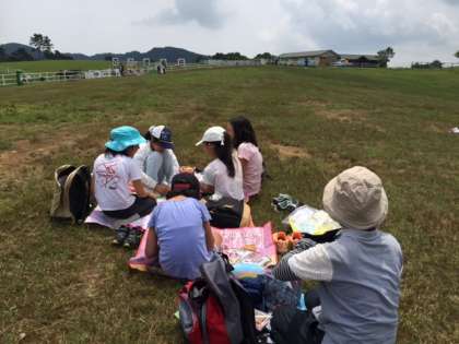 朝早くから心をこめて作っていただいたお弁当を「美味しい!」とみんな喜んで食べています。