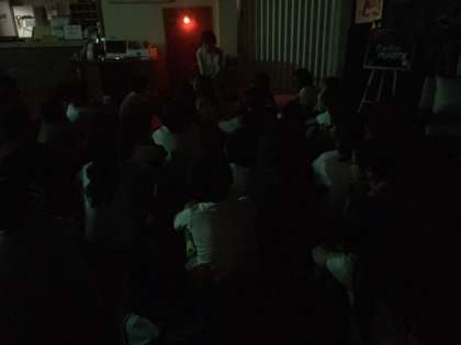 くじ引きで決まったペアとの顔合わせをした後、吉川先生から怖い話を聴いて、一ペアずつ出発しました。