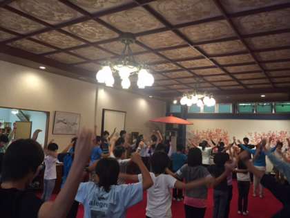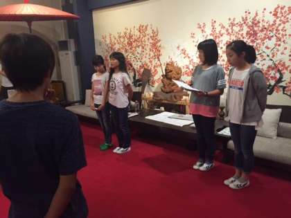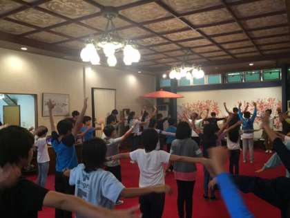 朝会では、今日の行程とめあてを確認し、元気よくラジオ体操をしました。