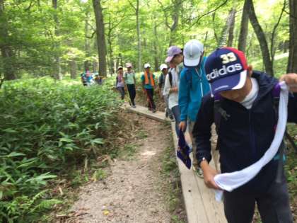 小田代ヶ原のハイキングは、木陰が多く時折涼しい風も吹いてきて歩きやすかったです。
