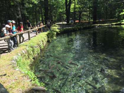 「さかなと森の観察園」では、広い園内に様々な種類の魚を飼育されている池が沢山ありました。