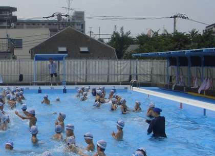 昨日は、熱中症指数が高かったため、本日より夏季水泳指導が始まりました。
