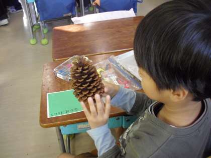 生活科の学習・・・松ぼっくりのクリスマスツリー作り・・・