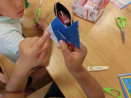 今年新たにできた「折り紙教室」、東深沢小学校の元保護者の地井さんと娘さんの渡邊さんに教えていただきいました。