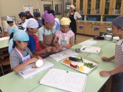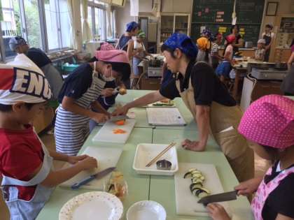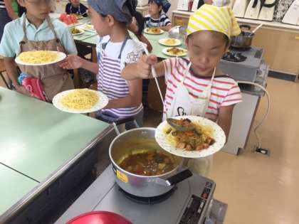 見た目も鮮やかで涼しげな「夏野菜のカレースパゲティー」はとても美味しくて、作った子どもたちは、皆大満足でした!