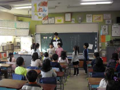 2年生の教室−“朝の会:日直のスピーチ”を始めようようとするところ・・・