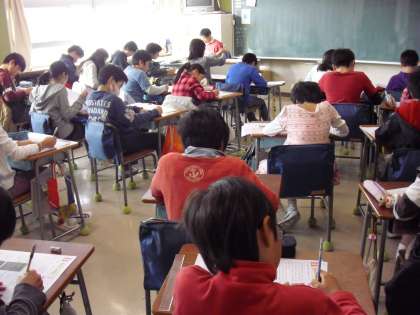 5年生の教室−国語のテスト風景・・・真剣に問題文を読んでいました。
