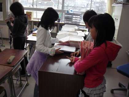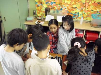 朝の会の目の時間を上手に活用して、“お楽しみ会”の練習をグループごとに相談したり、練習したりしていました。