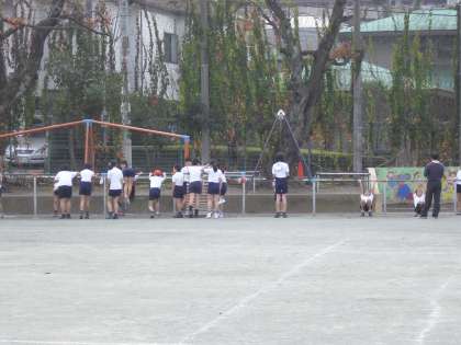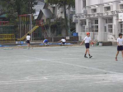 画面は、“体育:鉄棒・走り幅跳び”の練習風景です。