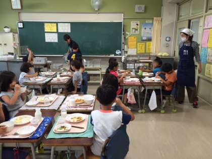 子どもたちに「久しぶりに食べる給食はどうですか?」と訊いたところ、みんな「美味しい!」とたくさん食べてくれていました。