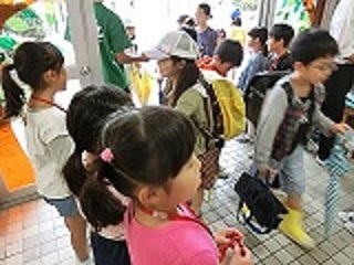 と挨拶したりする2年生にに登校する子どもたちも笑顔になっていました。