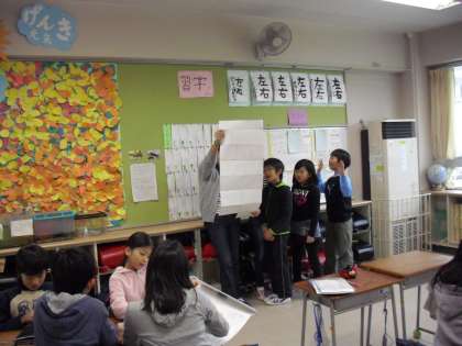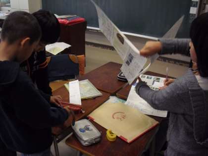 1時間目の授業は、“社会科”社会科見学のまとめをして、先生に確認をしてもらっていたり、グループで相談したりしていました。
