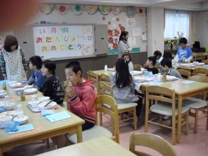 今日は、“12月の誕生給食”です。12月生まれの誕生給食では、画面の給食にシュウ