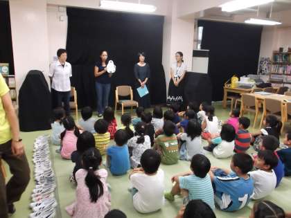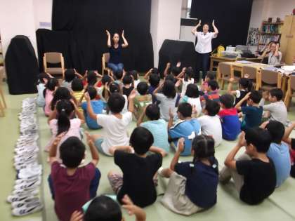 読み聞かせを始める前に、手遊びをして、気持ちを整えています。月一回のLLですが、子どもたちは、手遊びを覚えていて、その時間もとても楽しみにしています。