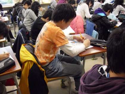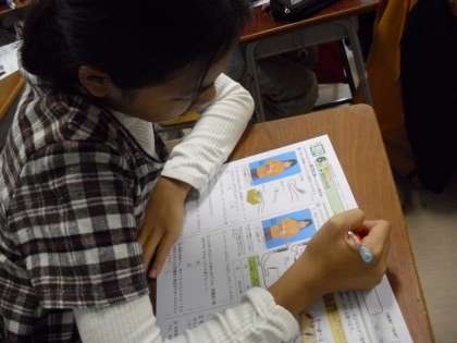 6年生の1時間目は、“理科”まとめのテスト・・・テスト用紙が配られると、すぐに記名してテストモードへ・・・。