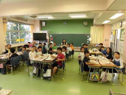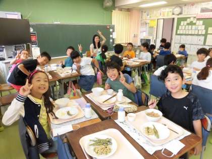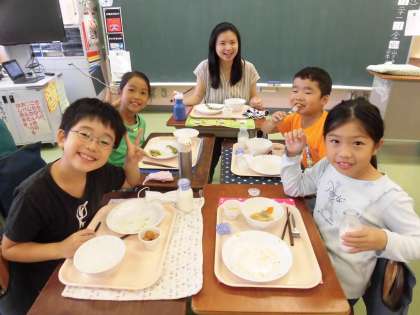 2学期からは、Lunch Time もSandy先生と一緒に、楽しく給食を食べることになりました。