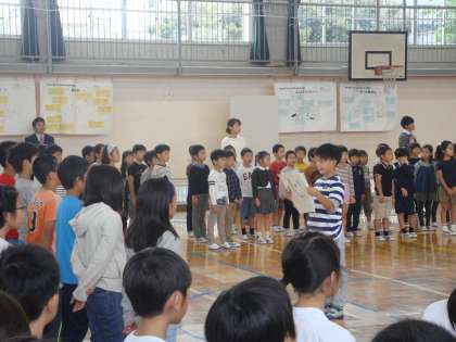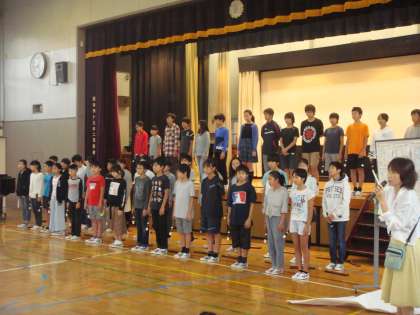 全校合唱は「語り合おう」を歌いました。この歌は劇団四季の「エルコスの祈り」というミュージカルの劇中歌で、優しい曲想と歌詞で子どもたちにも人気のある曲です。