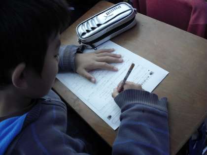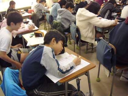 6年生の教室では、・・・・1時間目は、“算数テスト”です。学習してきたことを思い出して、問題をしっかり読んで取り組んでいました。