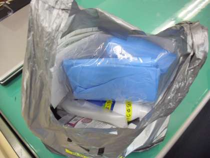 今日の職員朝会で・・・・養護教諭から、“吐物処理”に必要なものを袋に入れて、各教室の清掃道具入れの横に設置するよう説明がありました。