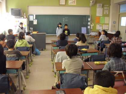 “朝の会:日直の話”・・・男の子は、今朝お父さんの物をとろうとして、ベットから落ちてしまったことを話していました。幸いけがは、なかったそうです。