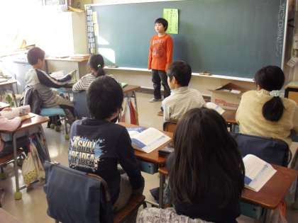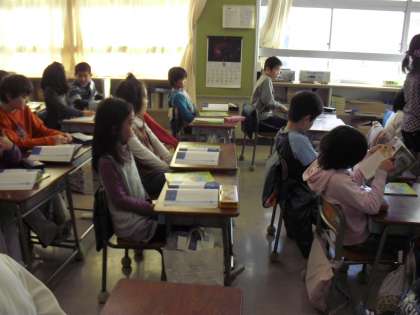 “朝の会:日直の話”・・・机上には、1時間目の“道徳の副読本”が準備できています。