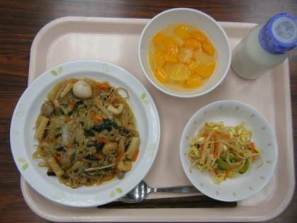【献立】 五目焼きそば   牛乳