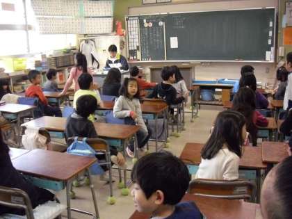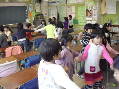 いつものように家庭からの連絡を確認して・・・・輪になって・・“おはよう あくしゅ”の歌で一日が始まります。