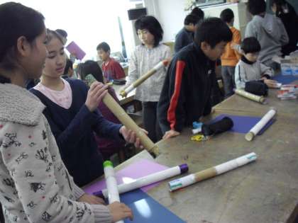 1,2時間目は、専科授業:図工です。かけ軸作り・・・です。