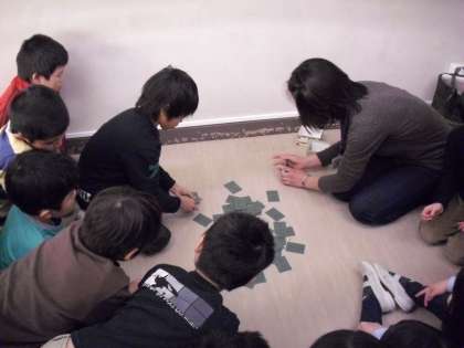 ミニ競技百人一首・・・礼に始めり・・・百人一首の札を並べ・・・