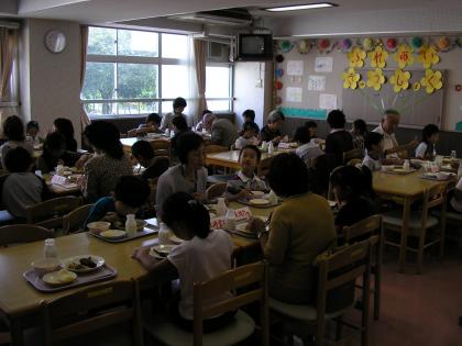 今日は、2年生の「ふれあい給食」の日です。2年生の祖父母を招いて一緒に給食をいただくものです。食後に音楽で、学習している歌をプレゼントしました。