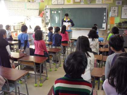 終業式の朝もいつものように、歌を歌いながら輪になってから、向かい合って先生や友達と元気にあいさつ・・・・