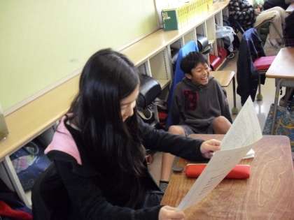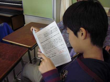 さて、6年生は通知表“椎の木”を一人一人に成果と課題を伝えながら、先生が渡していました。自分で確認したり、友達と見せ合ったりしていました。
