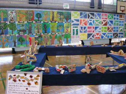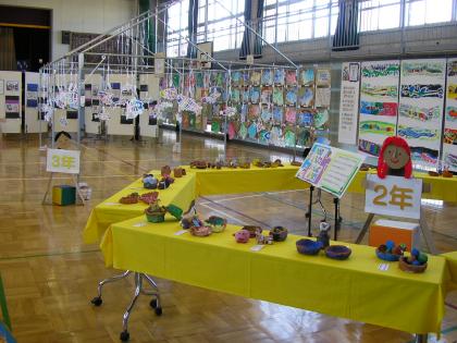 55周年記念展覧会が開かれました。体育館いっぱいに広がった子どもたちの作品は、どれも温かい笑顔を誘うものばかりでした。また、家庭科室ではPTA作品による手作りの品が展示され、心に残る展覧会となりました。