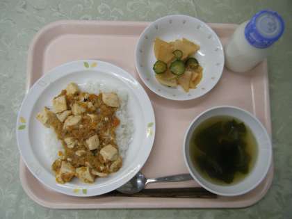 【献立】 麻婆豆腐丼 牛乳