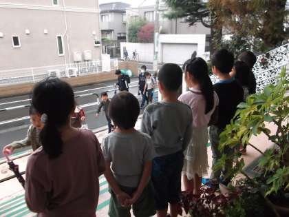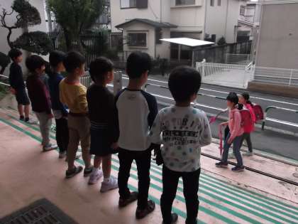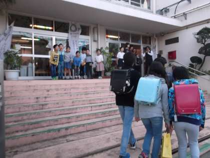 あいさつ当番は、いつもより早く登校して、上級生に元気よくあいさつします。