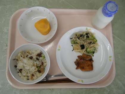 【献立】 まめまめおこわ 牛乳