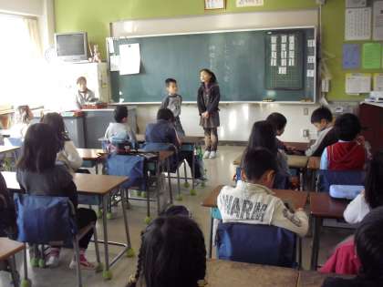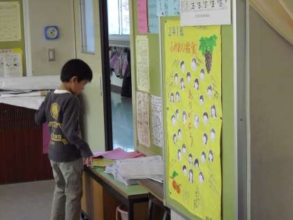 2年生の教室では、提出物を所定の場所に出して・・・“朝の会”が始まります。