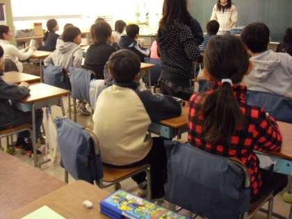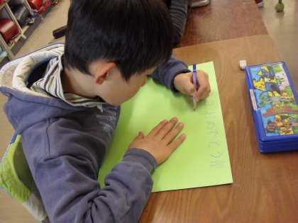 4年生の教室では、朝の会・・・朝の会の前には、時間を利用して・・・バースデーカードを書いている子もいました。
