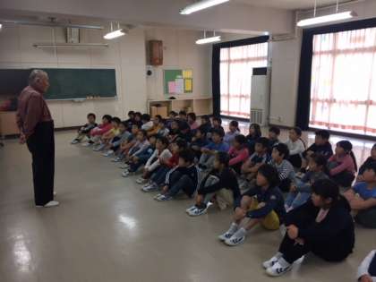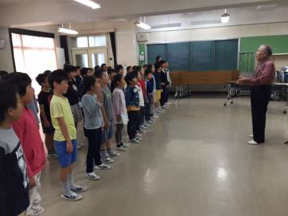 本日は、日本を代表する合唱指導者の渡邉陸雄先生が九品仏小学校にお出でくださいました。