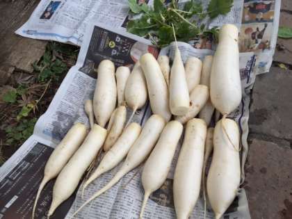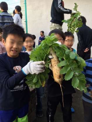 明日の給食には、子ども達が育てた大蔵大根も入れた「おでん」のメニューが出る予定です。