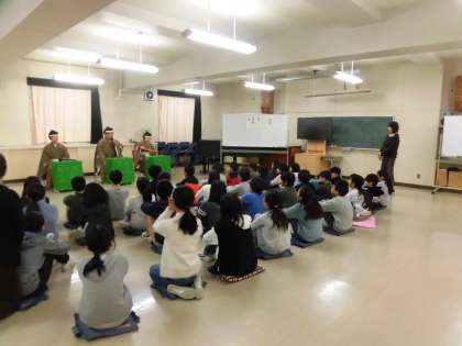 雅楽が1200年以上も前から演奏されてきたことや、それぞれの楽器の特徴を丁寧に教えていただきました。「調子」や「塩梅」といった言葉のはじまりも雅楽に関係があることを知り、子どもたちは感心していました。