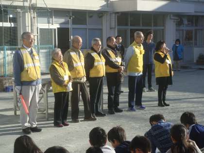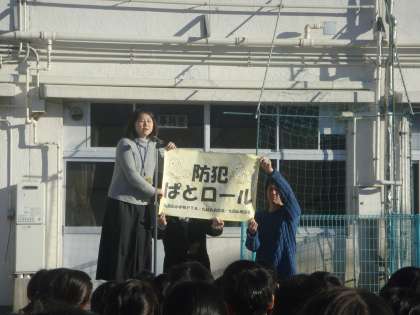 世田谷区「人格の完成をめざして」今月のテーマは「感謝」です。本校の子どもたちが日々、学校生活を送るために、多くの方々のご協力をいただいています。今回はPTAと自治会の方々が連携して行う「防犯パトロール」を紹介しました。各ご家庭にも「防犯ぱとロール」と書かれたカードが配布されます。自治会の皆様は黄色いベストを着用しています。子どもたちにはお見かけしたら「あいさつ」しようと呼びかけました。自分たちを支える方々のことを知り、関わりをもつことも「感謝」の一つと思います。互いに声をかけあう事は、安全で住みよい町づくりにつながるでしょう。