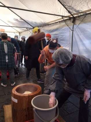 19日(土)に浄真寺の参道で青少年九品仏地区委員会主催の新春餅つき大会が開催されました。