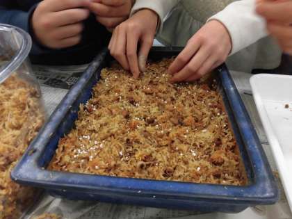 ゲストティーチャーの金子様と学校支援コーディネーターの森様にご指導いただき、サギソウの球根の植え替えをしました。植え方を丁寧に分かりやすく教えていただくだけでなく、なぜサギソウを九品仏小学校で植えるのか、常磐姫や鷺草伝説のお話もうかがうことができました。