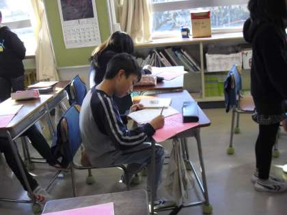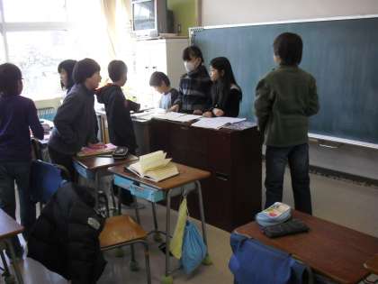 係が提出物の確認・・・図書カードに読んだ本を記入していました。