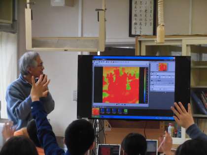 「寒い季節を快適に」をテーマに講師の先生をお招きして授業を行いました。今日来てくださったのは、熱環境計画研究室 工学博士の深井一夫先生です。深井先生はNHKの「すイエんサー」にも出演されたそうです。