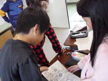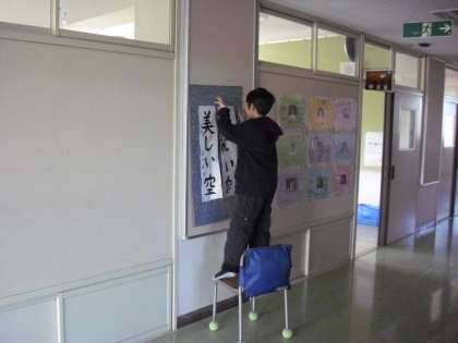 始業前に・・・係活動をしていました。昨日までの“校内書き初め展”の掲示物を外して・・・一人一人に返す準備を・・・・また、教室内では、“読み聞かせグループ”が、今度読む本の打ち合わせを・・・上手に時間を使っていました。