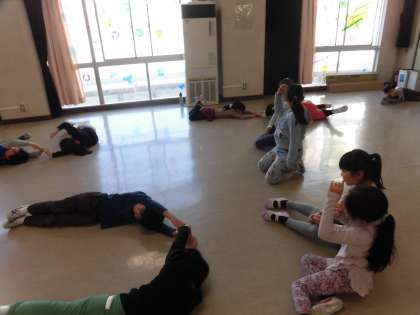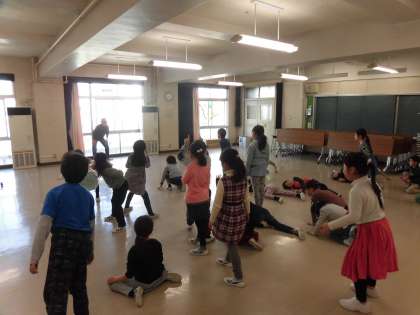 2回来ていただき、今日は最終回でした。教科書に出てくる「いっぽんみちをあるいていたら」のお話の続きに出てきそうな登場人物をグループで話し合って、表現しました。体全体を使ったり、表情や声などで工夫したりそれぞれのグループで表現の仕方を工夫しました。何を表しているのかを想像しながら、見るのも楽しそうでした。