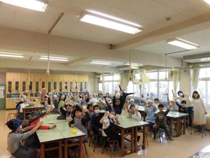 炊きたてのご飯をみんなでおにぎりにしていただきます。「樋口さんがこれまでいろいろ教えてくださったからこんなにとれたんだね」「もっちりして美味しい」「汗と涙の味がする」「自分たちで育てたお米だから、普段よりもより美味しく感じる」と嬉しそうに頬張る姿が見られました。たくさんとれたので、いつもお世話になっている主事さんや先生方にも食べていただきました。「水分のバランスがいいね」「もっちもちで美味しい」との感想をいただき、満足そうな表情になっていました。