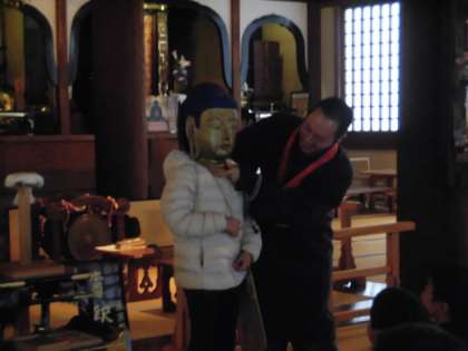 浄真寺の副住職でもある、清水礼人さんのお父様から、自然や行事、建物や仏像の意味などを教えていただきました。新しく建て替えられた「閻魔堂」も見せていただき、昔から大切にされている文化財がたくさんあることが分かりました。